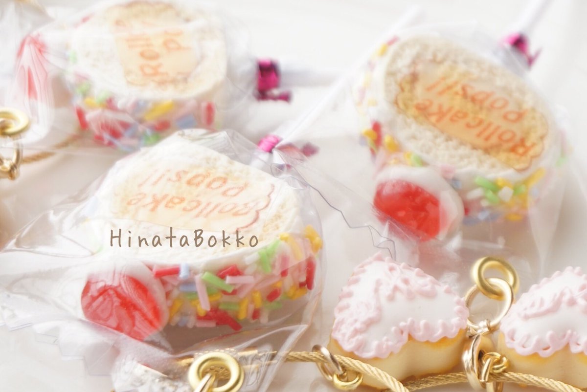 こんにちは😊 ロールケーキポップスの加工が終わったのでminneに登録でき次第販売したいと思います💕よろしくお願い致します🙇♀️ minne.com/@hinatabokko7 #フェイクスイーツ