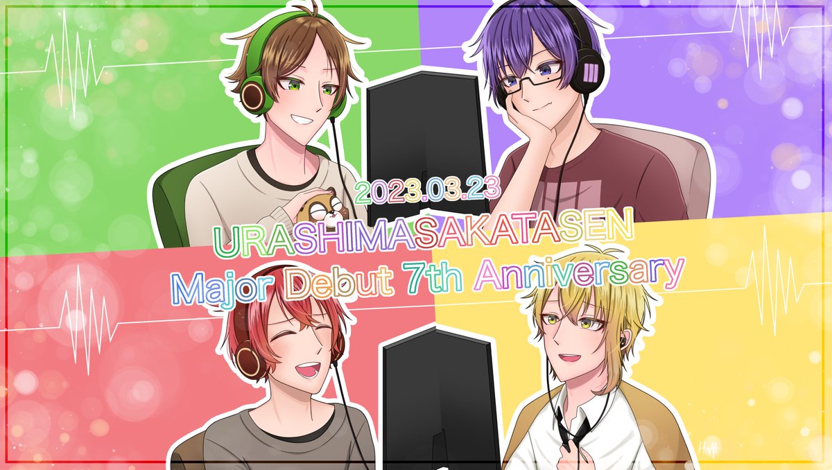 メジャーデビュー7周年おめでとうございます🚢💚💜❤️💛 これからも浦島坂田船の素敵な歌が沢山聴けますように💫 #浦島坂田船メジャーデビュー7周年 #うらたぬ王国の美術館 #しまーと #坂田です #センラの絵ぇやん