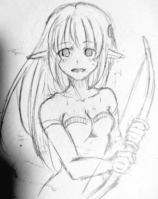63 529 練習用弓エルフ。 下描き。 22/02/25 22:44