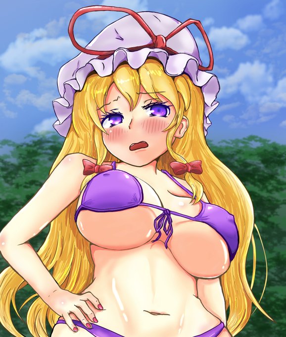#東方Project 嫌な顔しながらもちゃんと着てくれるマイクロビキニ紫さん描きました