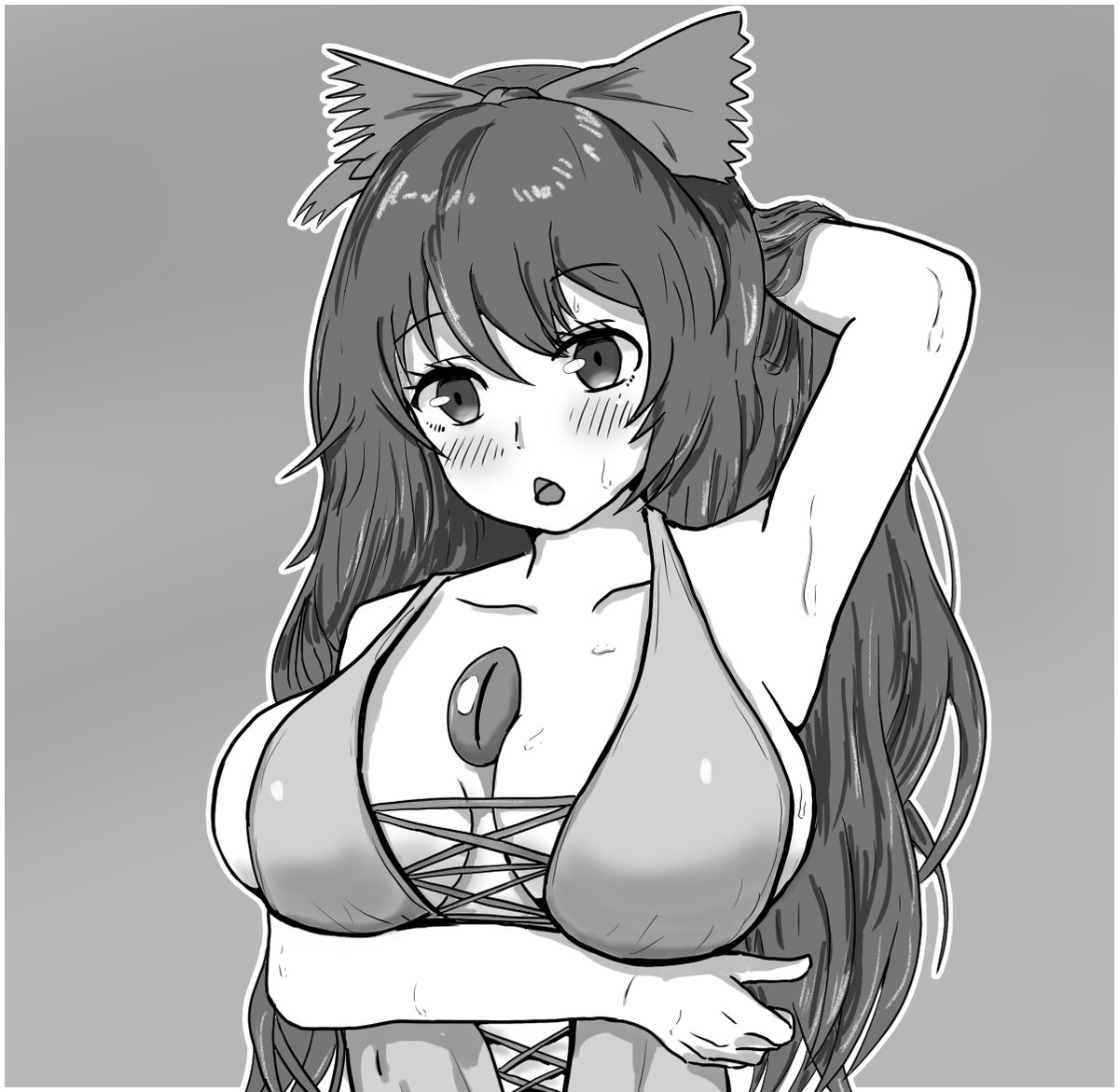 #深夜の真剣お絵描き60分一本勝負 #霊烏路空 モノクロでモノキニのお空ちゃん