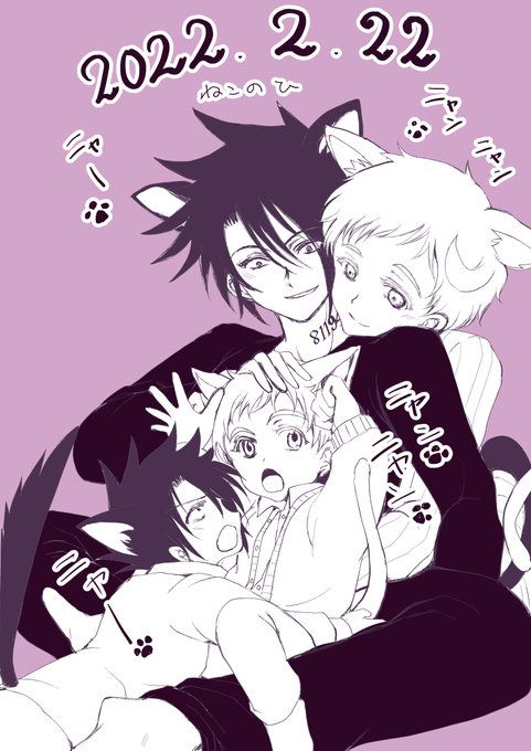 23 108 2がいっぱいなんでたくさん描いてみた。レイノマで猫の日〜♪ ややこしい構図なんでもう線画をレイヤー分けずに描いた100%勇気。 22/02/22 01:23