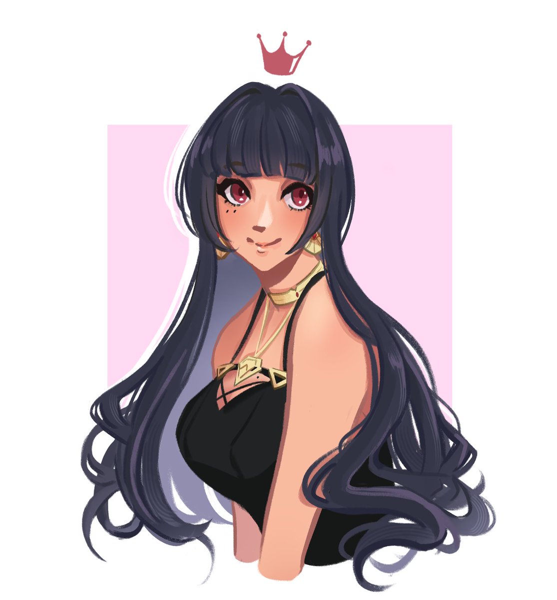 The other day in a stream Scarle mentioned different hairstyles she'd like to see herself in, one was a hime haircut with bangs, so I tried my best to draw it!~ 💖 (1/?) #ScarleArt