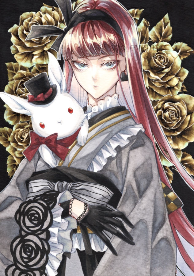 去年描いた緋継(ひつぎ)さんはこちら。 人間が大好きな緋色の女鬼で、木賊(とくさ)という翡翠鬼の恋人が居ます🌸 #コピック