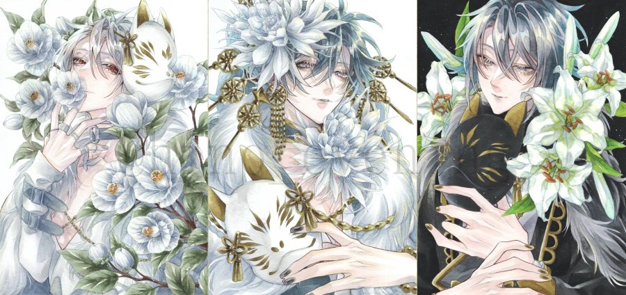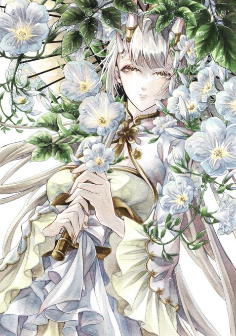 緋継(ひつぎ)とノウゼンカズラ(白)。 こちらも完成しました🌸 #コピック