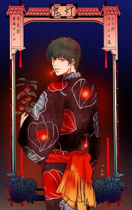 68 264 #銀魂植物図鑑 『鬼灯』 素敵な企画をありがとうございます✨ 🚬に灯る火の赤さから鬼の副長の灯、鬼灯を連想しました。 22/08/31 07:53