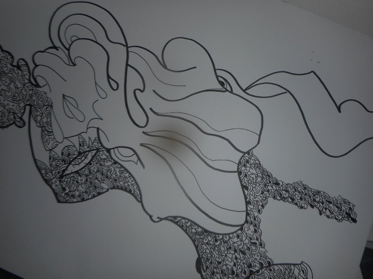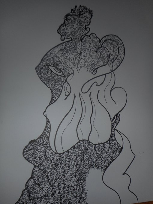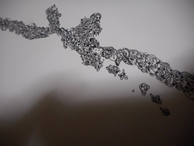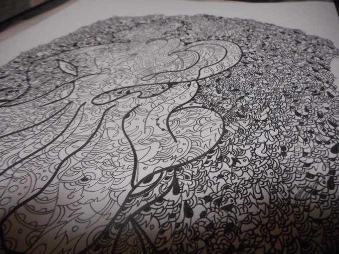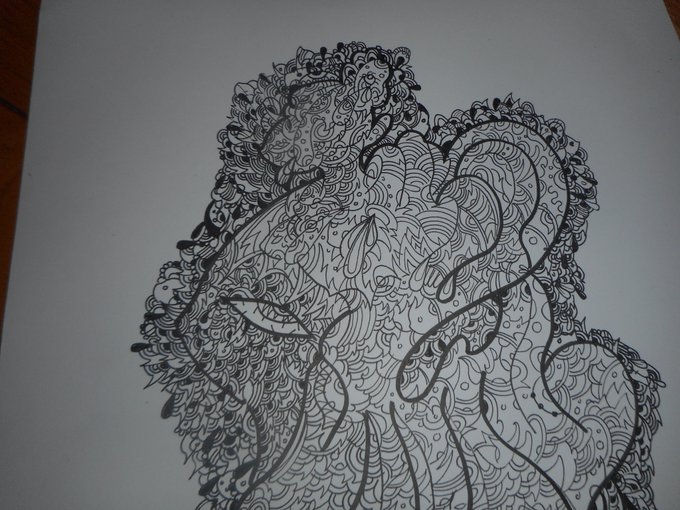 #ペン画 #エアコラボ2 #コラボカレンダー 松永さん(私と同一人物)の線画に模様を描くコラボ作品の途中。これが1月になる予定。