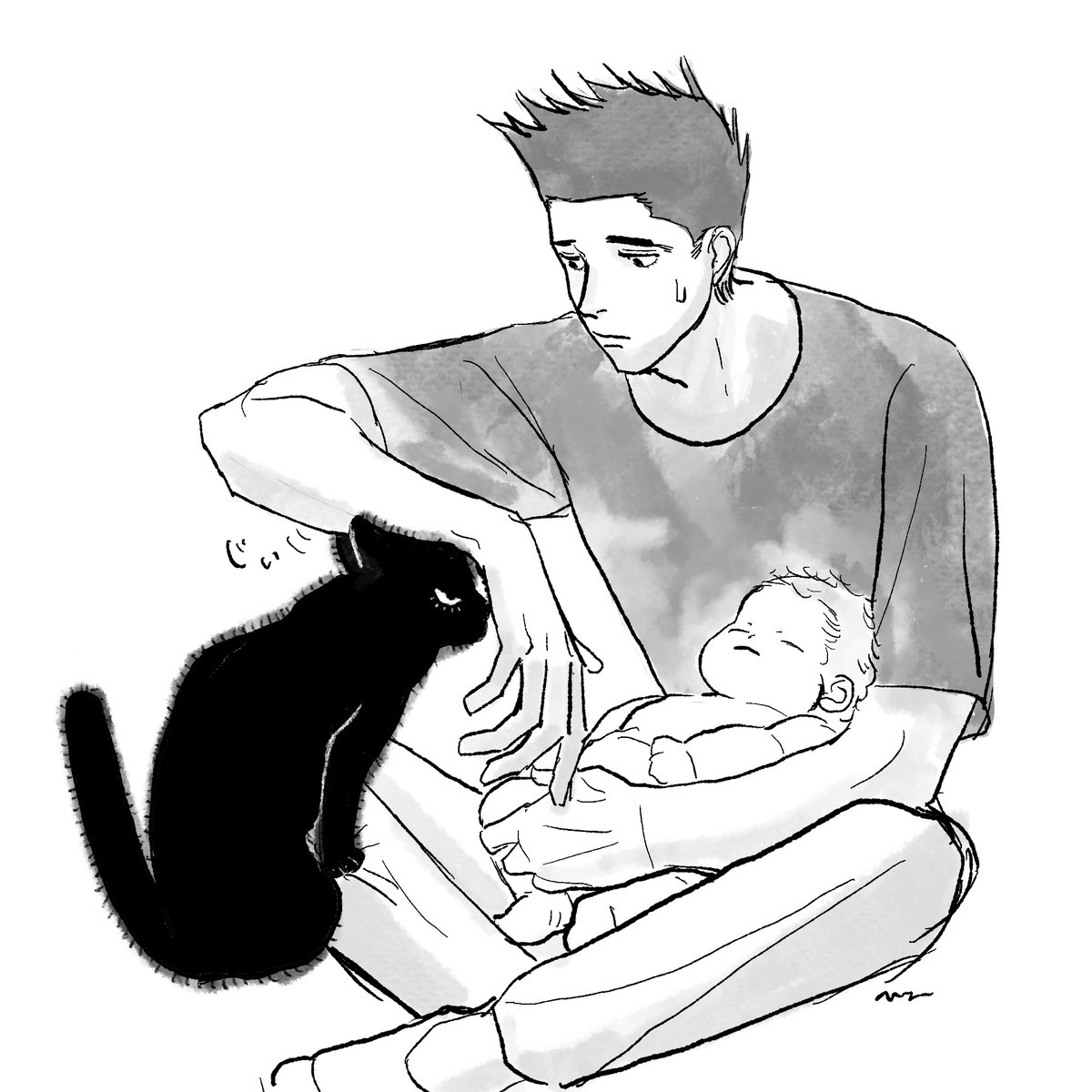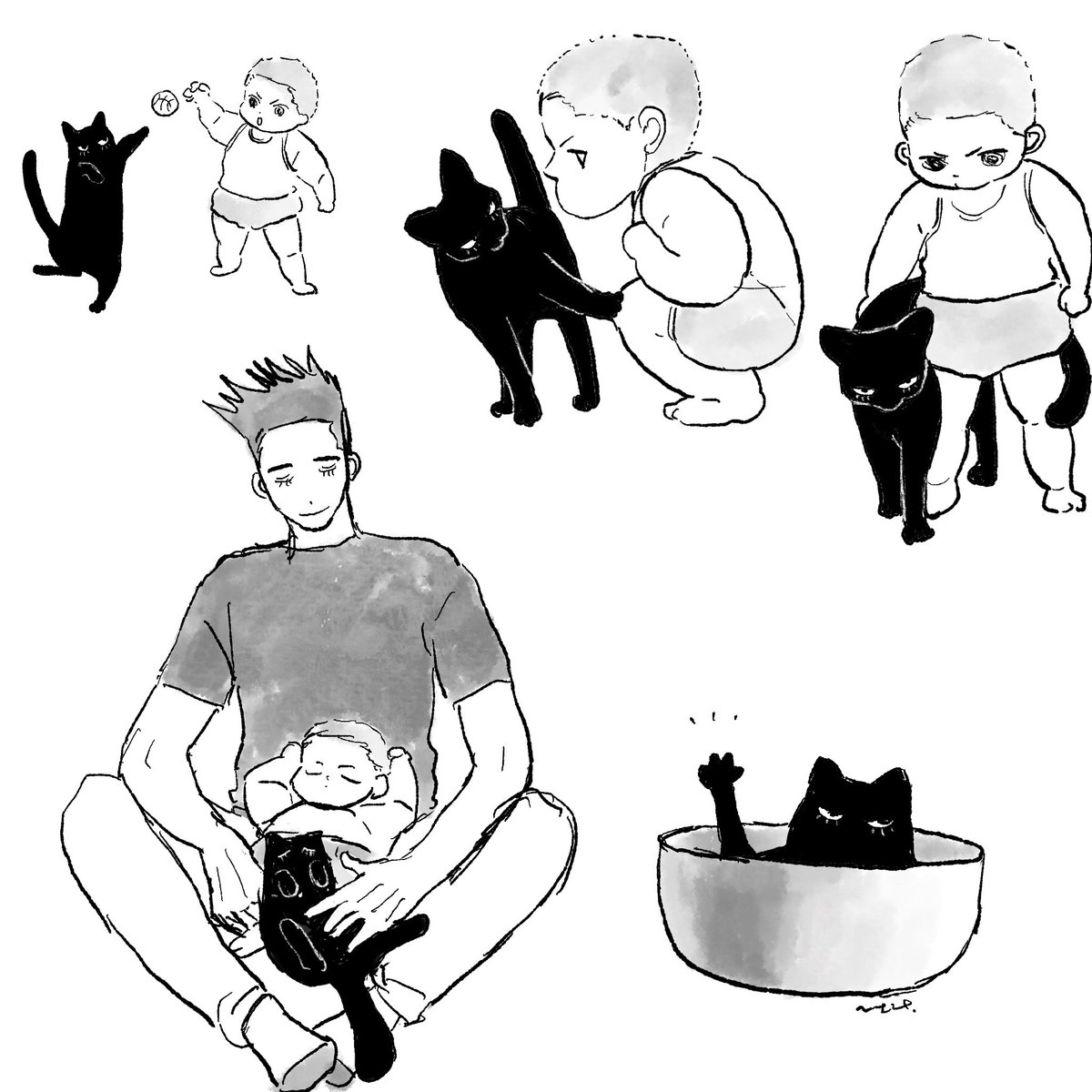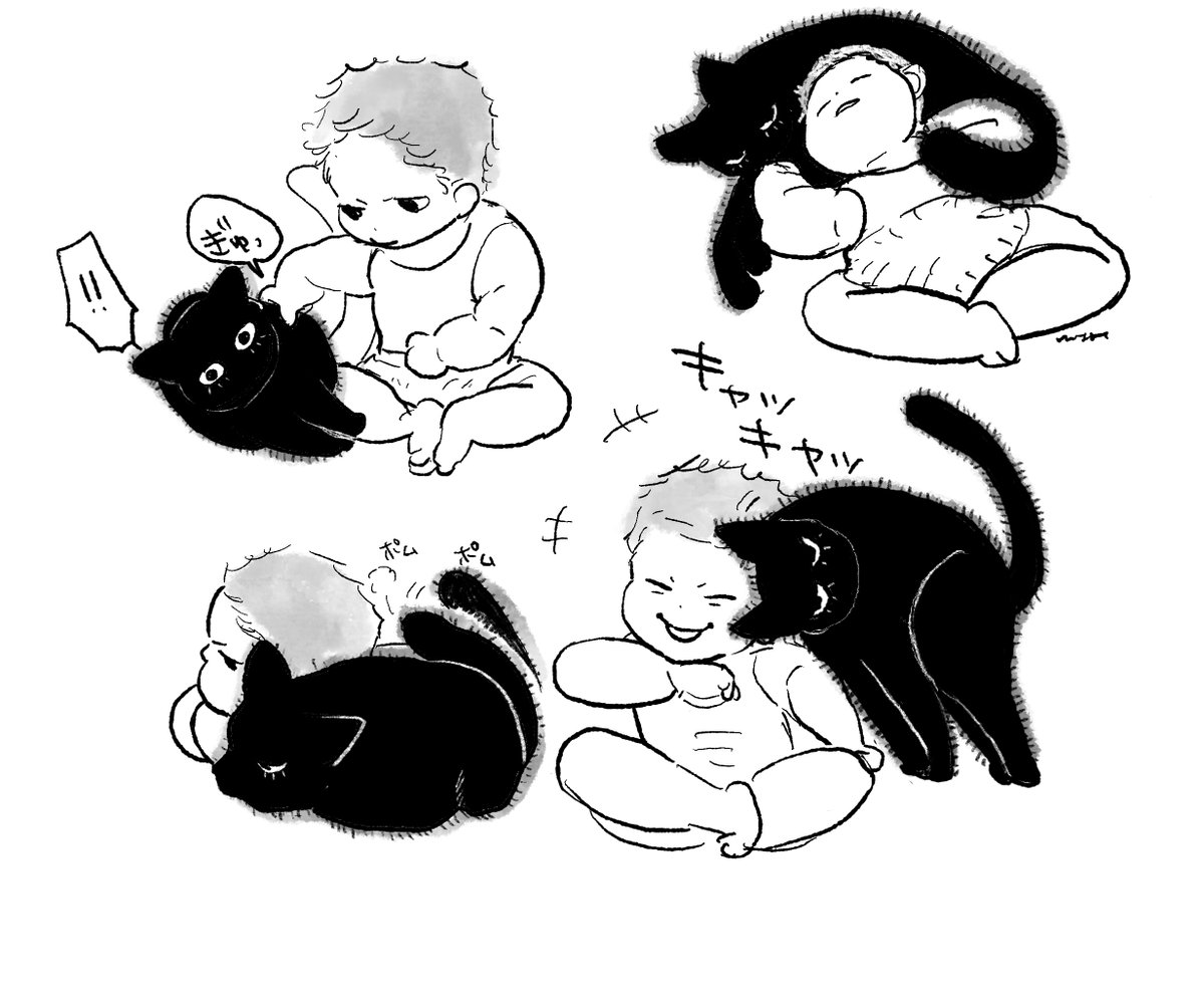 突然赤子になった🌸と、赤子をおもりしている流ねこ🐈⬛