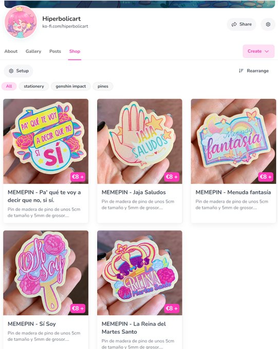 TENÉIS LOS MEMEPINES A LA VENTA YA AQUÍ: ko-fi.com/hiperbolicart/… Son 8€ para cubrir lo que se va a llevar ko-fi pero os dejo el ENVÍO GRATIS 🌸💗