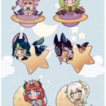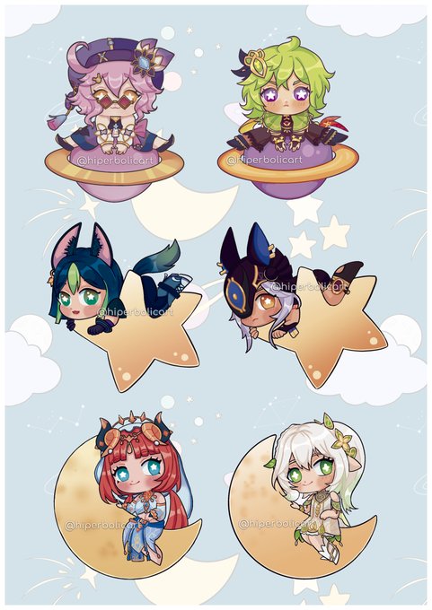 I've finished my new keychain collection and these are some of the new #Sumeru characters I've included. I hope you like them! The whole concept is the space and the night, moon and stars! #GenshinImpact #genshinimpactfanart