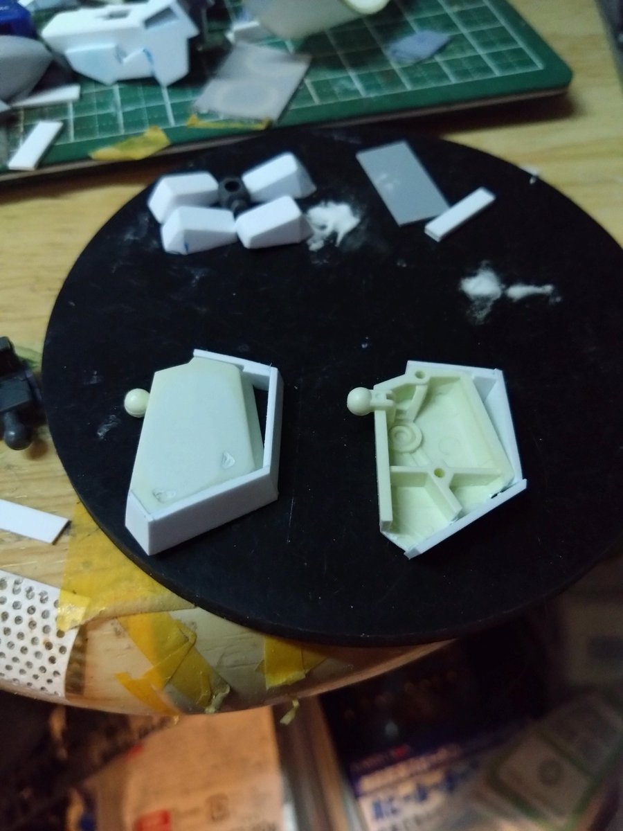 量産配備後ならともかく試作機にジオニックのザクシールドは、某少佐に陰謀呼ばわりされちゃうのでヅダシールドをスクラッチしてみたよ😁 似合うかな…🤔 #ガンプラ #プロトタイプドム #模型サークルGMR