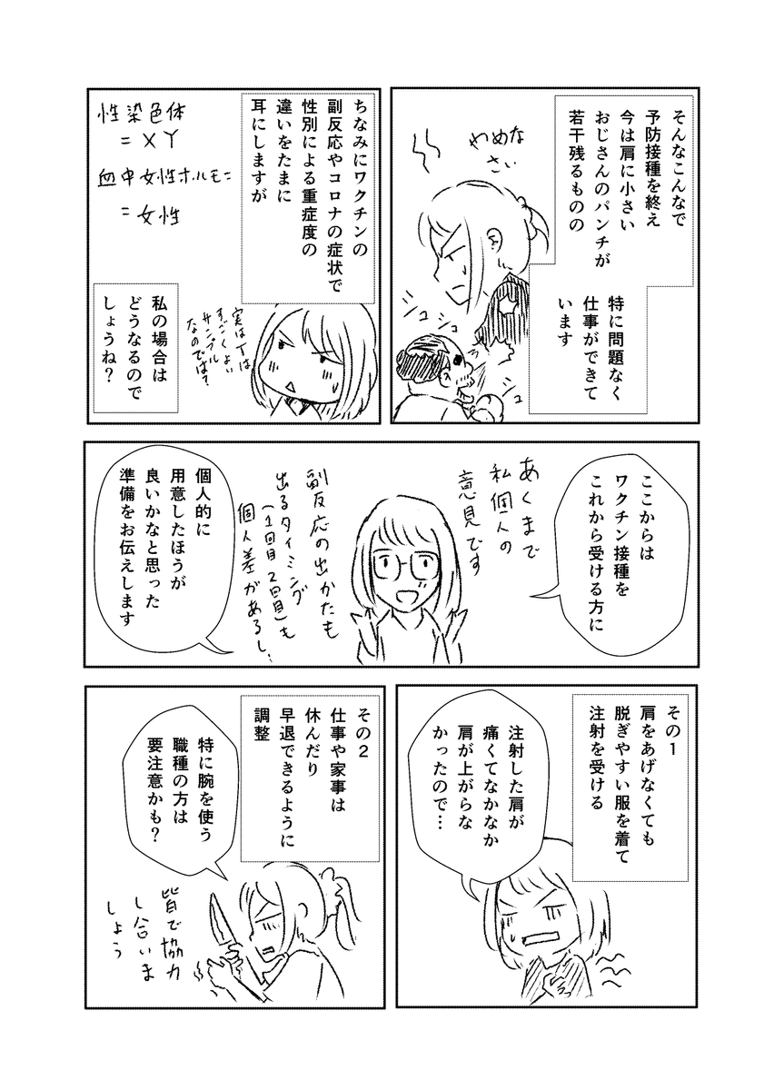 新型コロナウィルスのワクチンを2回摂取した体験レポ漫画です。 皆さんの、摂取の判断の参考になれば…。 ※あくまで個人の体験レポです。私は専門家ではありません。 (1/2)