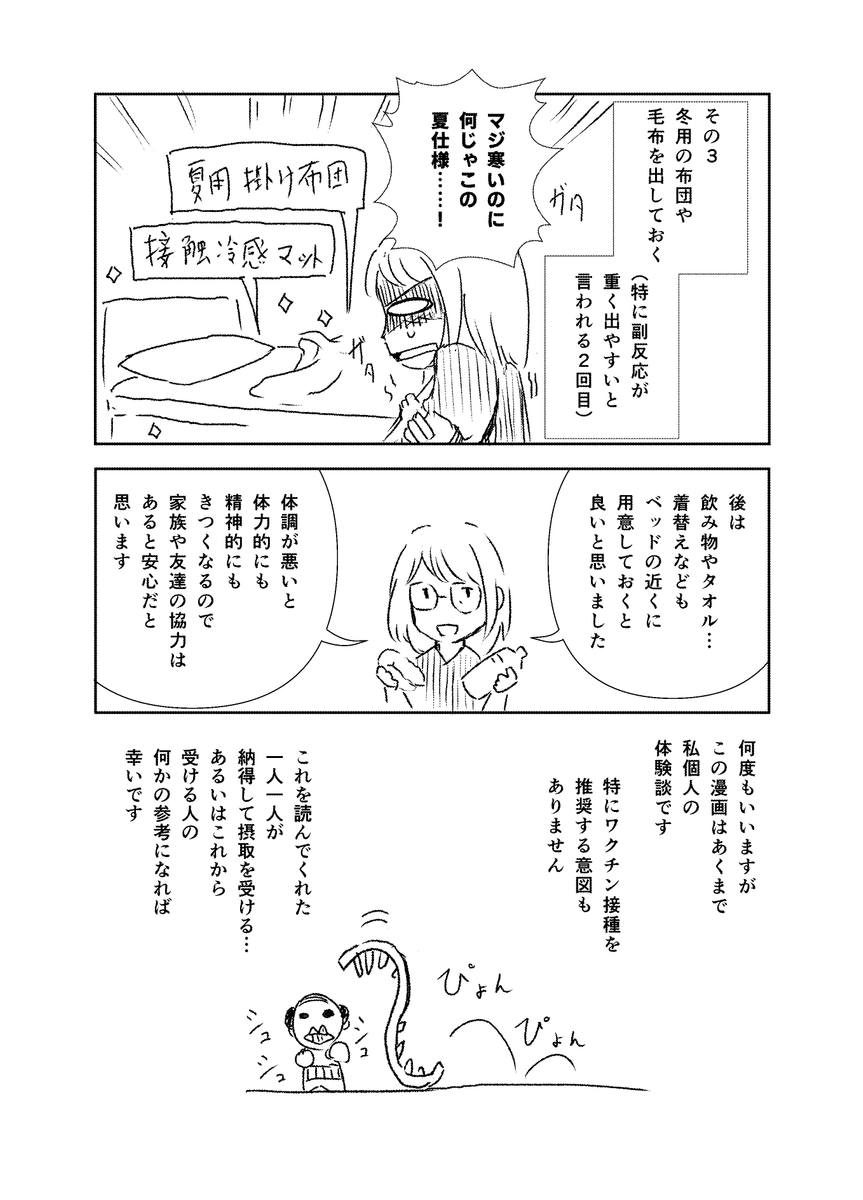 230 515 新型コロナウィルスのワクチンを2回摂取した体験レポ漫画です。 皆さんの、摂取の判断の参考になれば…。 ※あくまで個人の体験レポです。私は専門家ではありません。 (1/2) 21/07/08 13:28