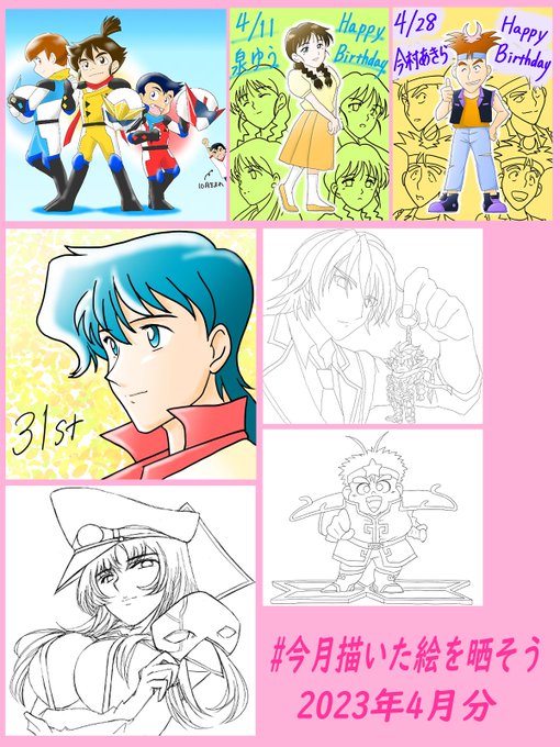 #今月描いた絵を晒そう まだまだ質より量だな、うん頑張ろう 🎂お誕生日 妃英理、森田成一さん(バーナビー)、Sヴィーナス、日向仁、真野美紀、星山吼児×2 🗓記念日 Vtuberさん(番田長助さん)V化一周年 ついでにとんちんかんアニメ放送開始35周年 ✍️配信即描き 灰原ズズwww