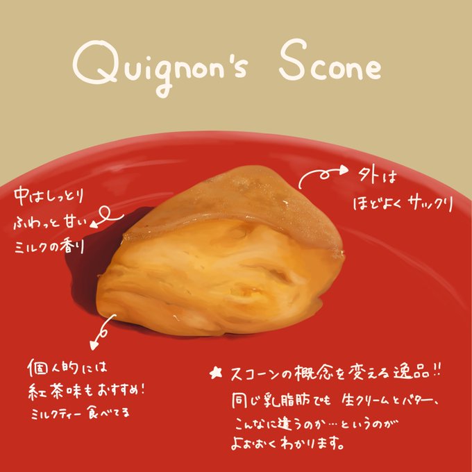 キィニョン(quignon.co.jp)のスコーンを食べました✨ 外さっくり、中しっとり んま〜〜〜とにかくおいしかった!! 個人的には紅茶味もおすすめです☕ #キィニョン #食べ物イラスト #illustration #スコーン