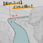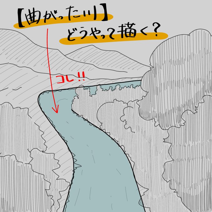 【曲がった川ってどう描く?】 川や道に対して、「曲がるな!描けない!」って思ったことありますよね。でも大丈夫です。これさえ知っておけばすぐに描けるようになります!もういくら曲がっても怖くないです^^ #イラスト #イラスト練習 #イラスト好きと繋がりたい
