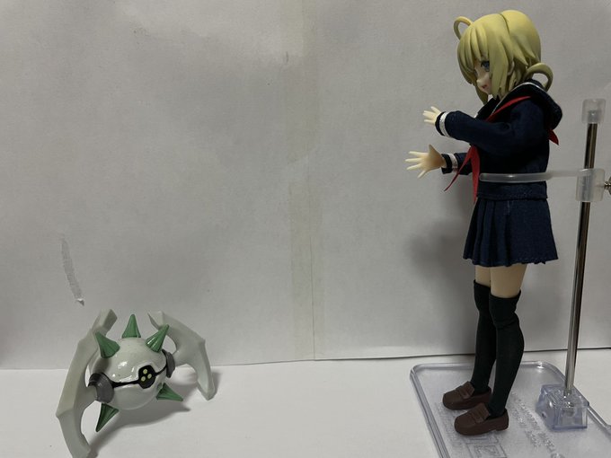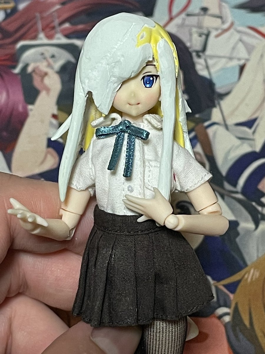 よし、何とか出来た… ここまで来るのに問題が1つ発生してしまった 楠美の髪の毛をゲートを切った時 その振動で髪の毛の毛先がパッキンと …(´・ω・`) その後瞬間接着先生に来てもらい何とかなりました(`・ω・´)ゞ 今後の目標はボディーを買う事 #アサルトリリィドール部
