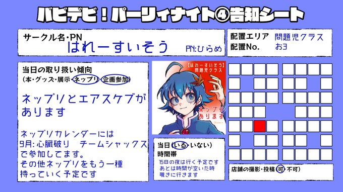#バビデビ4サークル参加 問題児クラス「お3」にて参加予定です! ネップリとエアスケブをやってますのでお気軽にご来店ください〜