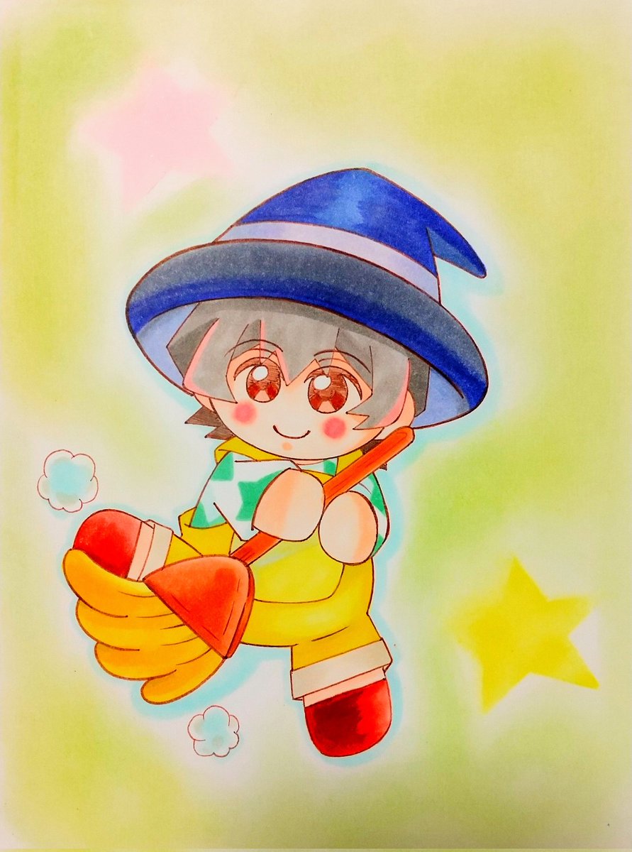 こんにちは! 私はカービィのぶるーむはったーで 参加しました。 彼は服を着ていないので チアぬの足を赤に帽子は魔法使いの帽子を服はボディーの黄色にして、シャツの⭐️はスターアライズのぶるーむはったーの頭に巻いているタオル柄にしました😂 解りづらいコスになった🤭 #パ男子コスプレパーティー