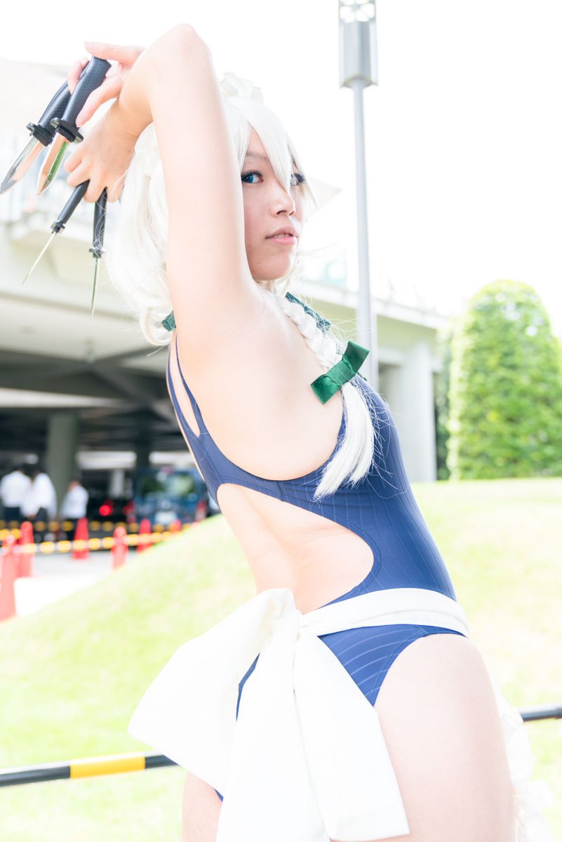7 27 2016年08月12日 コミケ1日目 じゅじゅさん(@jj_cos) 東方Projectより十六夜咲夜の競泳水着アレンジ。 撮影させていただき、ありがとうございます。 #C90 #コミケ #コスプレ 16/08/13 00:55