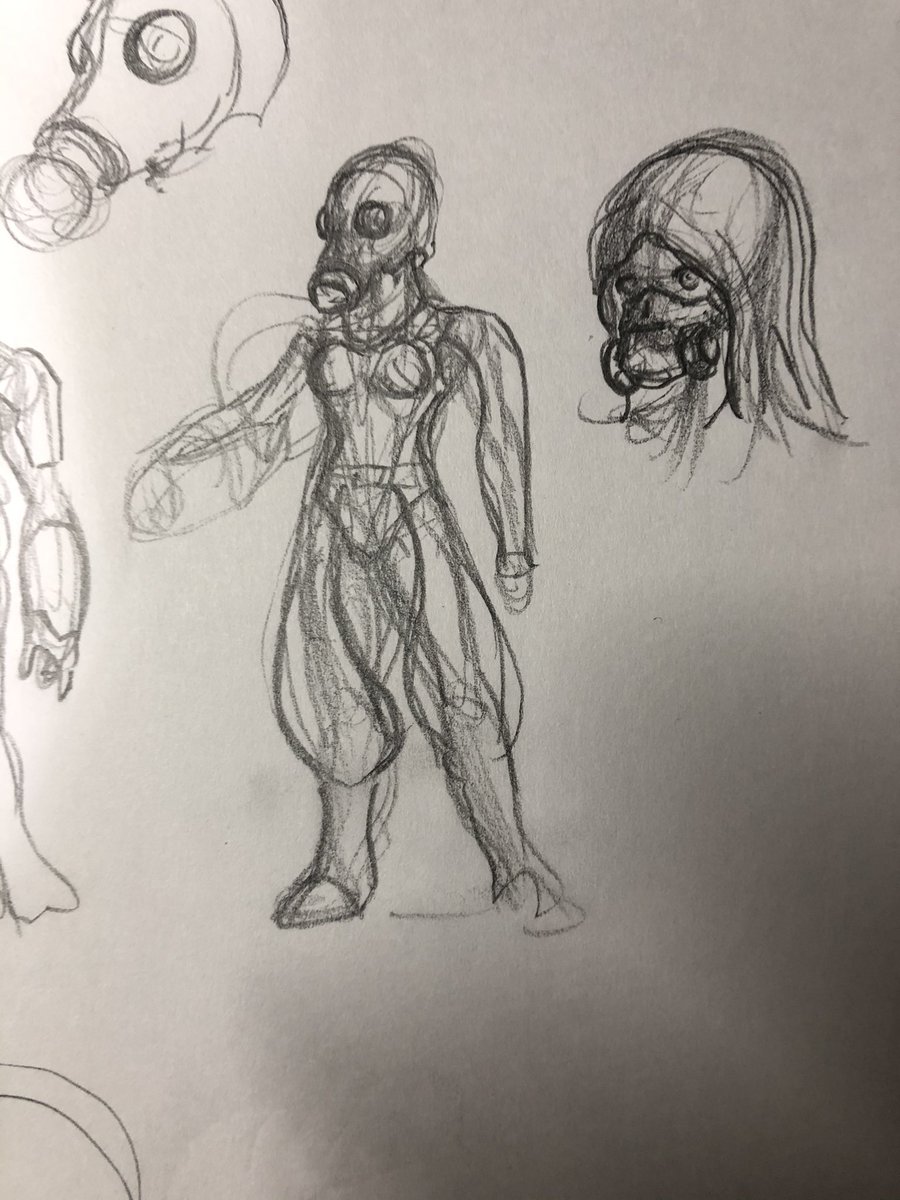 昼休みに描いた落書きマッドガッサー😲 初めて聞いた名前で名前からキノコを連想して、調べてガスマスクのやばいヤツが生まれ.....って感じです^_^
