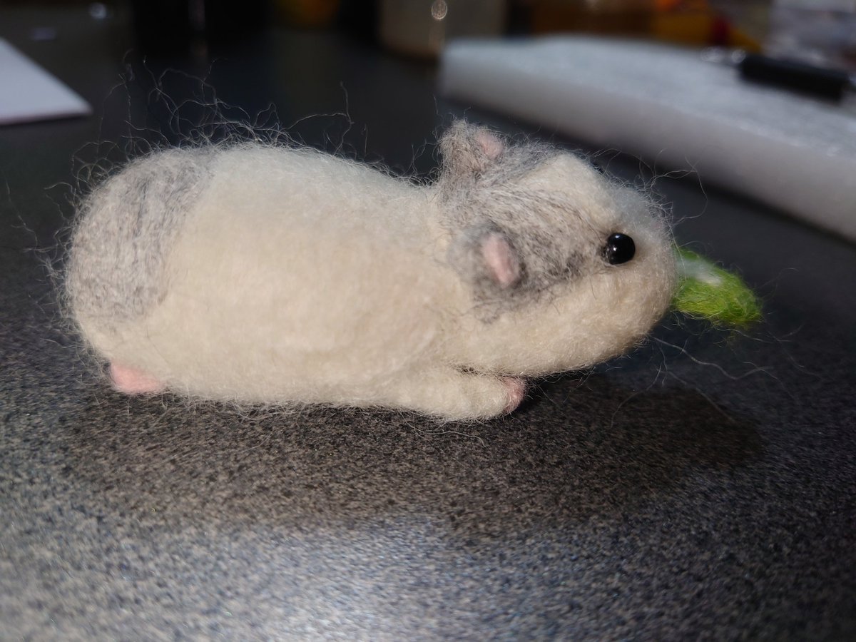3 23 羊毛フェルト始めました。 ハンドメイド作家さん達と仲良くなり、自分も何かやりたいなぁと思っていたんだけど。 手軽に時間のある時に出来る羊毛フェルトなら出来るかな?と思いやり始めました。 この写真は2作品目。 まだまだヒヨっ子ですが、何とか形になりました。 #羊毛フェルト 22/10/26 00:58