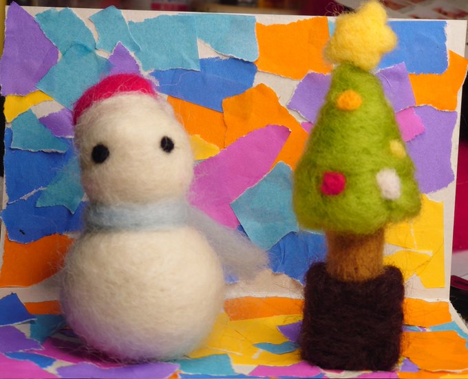 1 12 色々とあって急遽作った作品。 1日で仕上げました。 台紙は息子作です。 何とか間に合ったε-(´∀`;)ホッ #羊毛フェルト 22/12/21 17:55