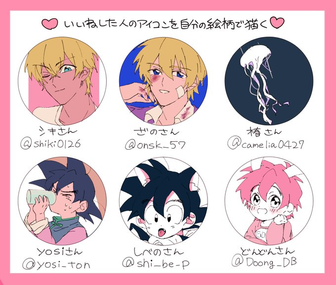 6 23 ♡いいねした人のアイコンを自分の絵柄で描く。構って下さりありがとうございました!! 19/03/17 21:55