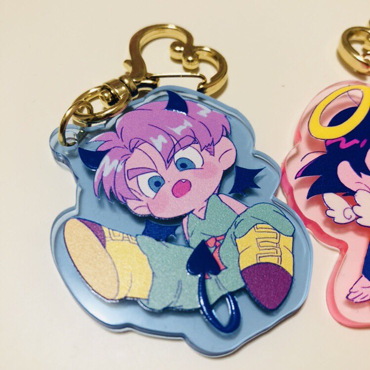 アクキーです💖分かりずらいけど、ツノ/しっぽ/輪っか/羽にちょっとだけグロス加工してます😉