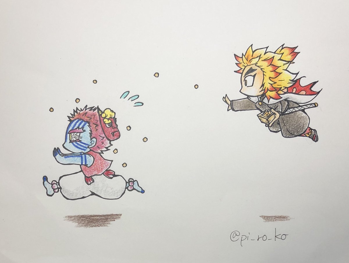 鬼滅の節分 昨日アップすればよかったなぁ #鬼滅の刃 #鬼滅の刃イラスト #鬼滅の刃ファンアート #鬼滅の節分 #煉獄杏寿郎 #煉獄杏寿郎イラスト #猗窩座 #猗窩座イラスト