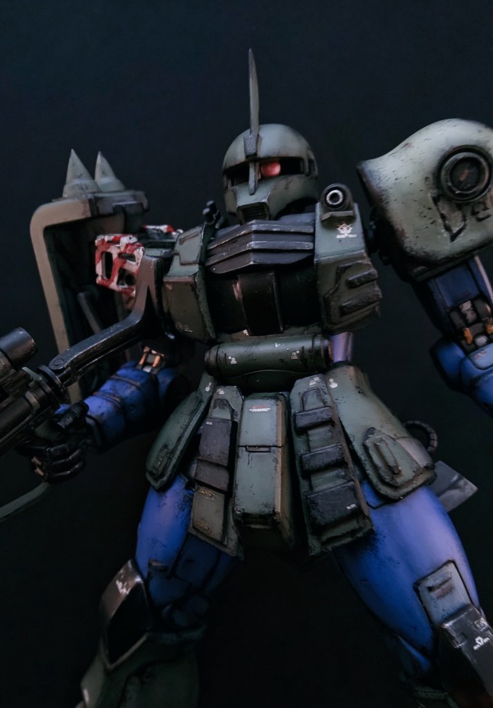 #2021年もあと少しなので今年の作品の中で特に気に入っている作品を上げる とても久しぶりに。 MGのヘンリーさんのザク。 パテ盛りやらスジ掘りやら汚しやらとても難しかったです。 イフリートのカラーが実はパーソナルカラーでしたと言う設定です(^^) お気に入りザク💪 #ガンプラ