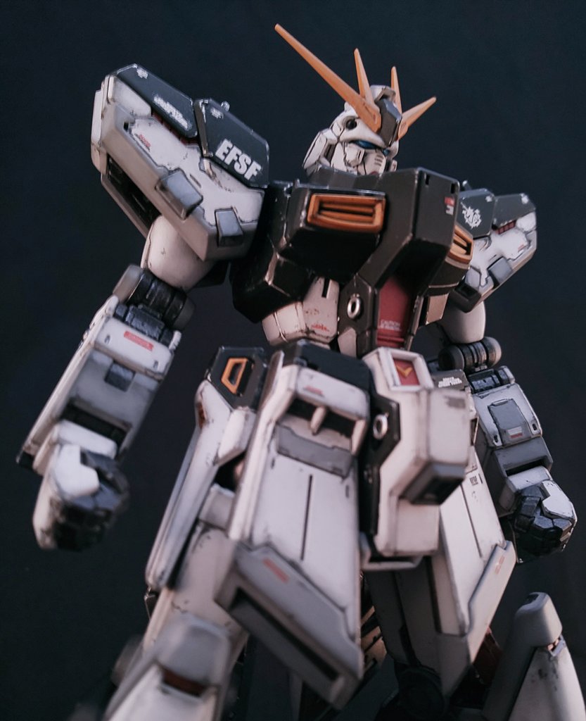 #この作品がなかったら今の自分は存在しなかったと言っても過言ではない MG ガンダム ver.3 何度雑誌見返しても汚しがうまくいかないんで我が道を往ったもの。 ・面倒なんでサフ無し ・白パーツは未塗装 ・汚しに色鉛筆使用 低コストでも愛と気合があればなんとかなります(^q^) #ガンプラ