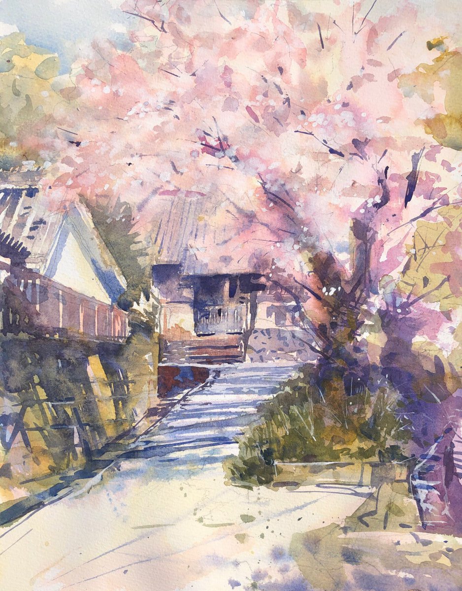 2019.4.7 奈良市佐紀町の円福寺前の桜をスケッチ。 かなり久しぶりのスケッチ。平城宮跡の北側の佐紀町は、路地歩き的にもちょっと面白くてお散歩写真してたら描き始めが遅くなってしまった。F6、ウォーターフォード ホワイト、透明水彩。130分。 #水彩 #スケッチ #watercolor #sketch #桜