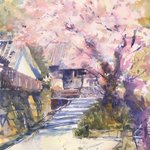 15 73 2019.4.7 奈良市佐紀町の円福寺前の桜をスケッチ。 かなり久しぶりのスケッチ。平城宮跡の北側の佐紀町は、路地歩き的にもちょっと面白くてお散歩写真してたら描き始めが遅くなってしまった。F6、ウォーターフォード ホワイト、透明水彩。130分。 #水彩 #スケッチ #watercolor #sketch #桜 19/04/07 18:54