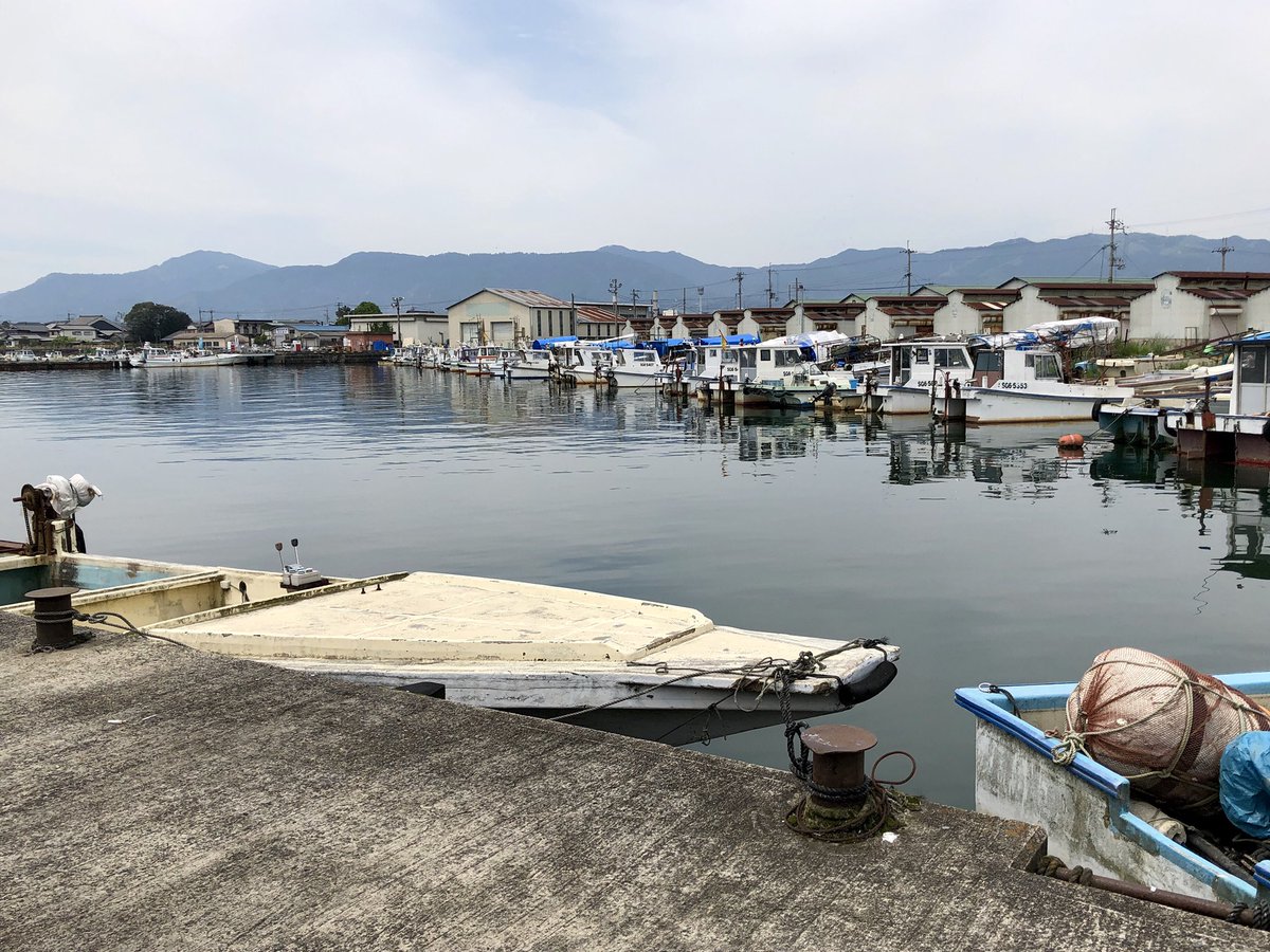 2019.5.12 堅田漁港をスケッチ。 . 北側の突堤から船溜まりに並ぶ漁船とちょっと面白い形の作業小屋を描きました。 下描き、3回描き直して1時間。 . 滋賀県大津市本堅田 . F6、ウォーターフォード ホワイト、透明水彩。3時間10分。 . #水彩 #スケッチ #watercolor #sketch #漁港