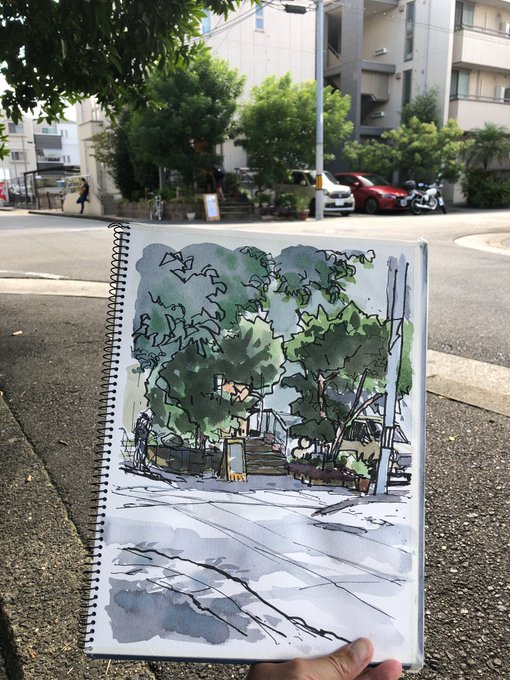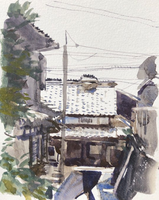 2 26 2019.5.16 坂本でお散歩スケッ、この日2枚目。 . 透明水彩クロッキーの練習。 手前をもっと入れようと思っていたのにな。 . F0、モンバルキャンソン、25分。 . #風景画 #透明水彩 #スケッチ 19/05/17 19:12