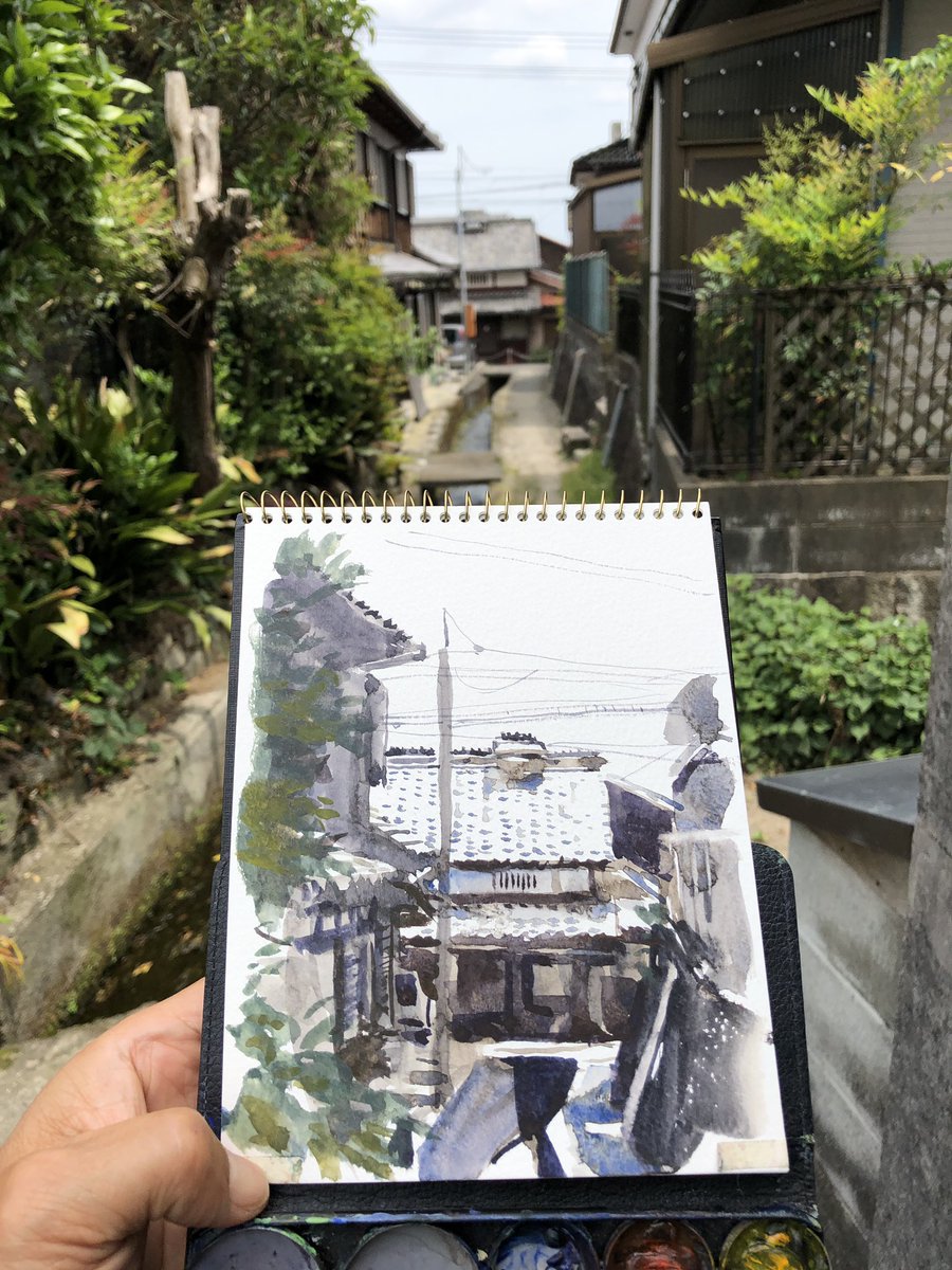5 55 2019.10.26 大津市堅田で、築100年以上のどっしりとした町家をスケッチ。 ペン描き含めて現場制作。 波乃音酒造さんのすぐそばで、酒蔵に背中がつく感じで携帯イスに座って、結構あやしい人でした。 F6、ウォーターフォード ホワイト、ペン、透明水彩 三原色+ジョーンブリアン。3時間10分。 #水彩 19/11/16 23:25