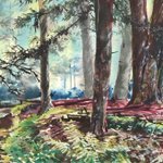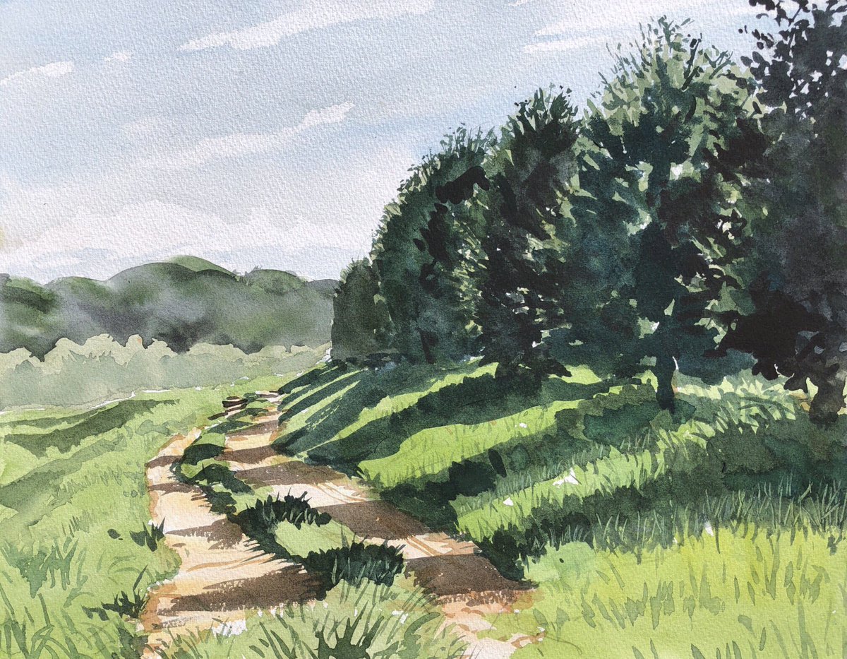 1 36 2019.8.10 信州で水源の森をスケッチ。 . 恩師にお誘いいただき、長野県八ヶ岳の裾野の富士見町へスケッチ旅行。 . この日2枚描いた、1枚目。 . F6、ウォーターフォード ホワイト、透明水彩 三原色。3時間50分。 . #風景画 #透明水彩 #スケッチ 19/08/11 18:33