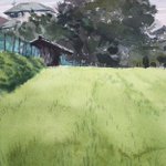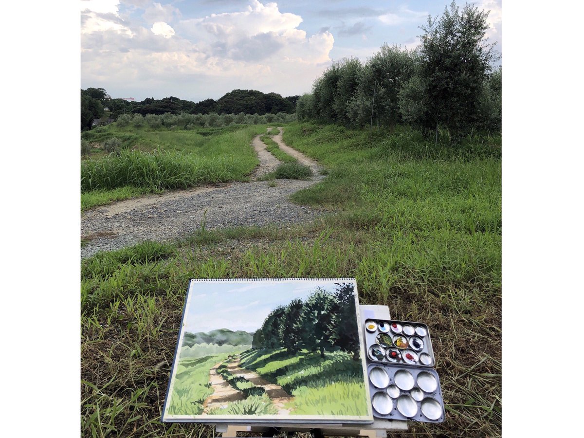1 42 2019.9.3 オリーブ畑をスケッチ。 . 熊本県荒尾市の中川オリーブ農園さん。併設のリストランテでランチして、20品種 約1000本のオリーブ畑を描かせていただきました。暑かった〜。 F6、ウォーターフォード ホワイト、透明水彩 三原色。1時間30分。 #風景画 #透明水彩 #三原色 #スケッチ 19/09/13 08:01