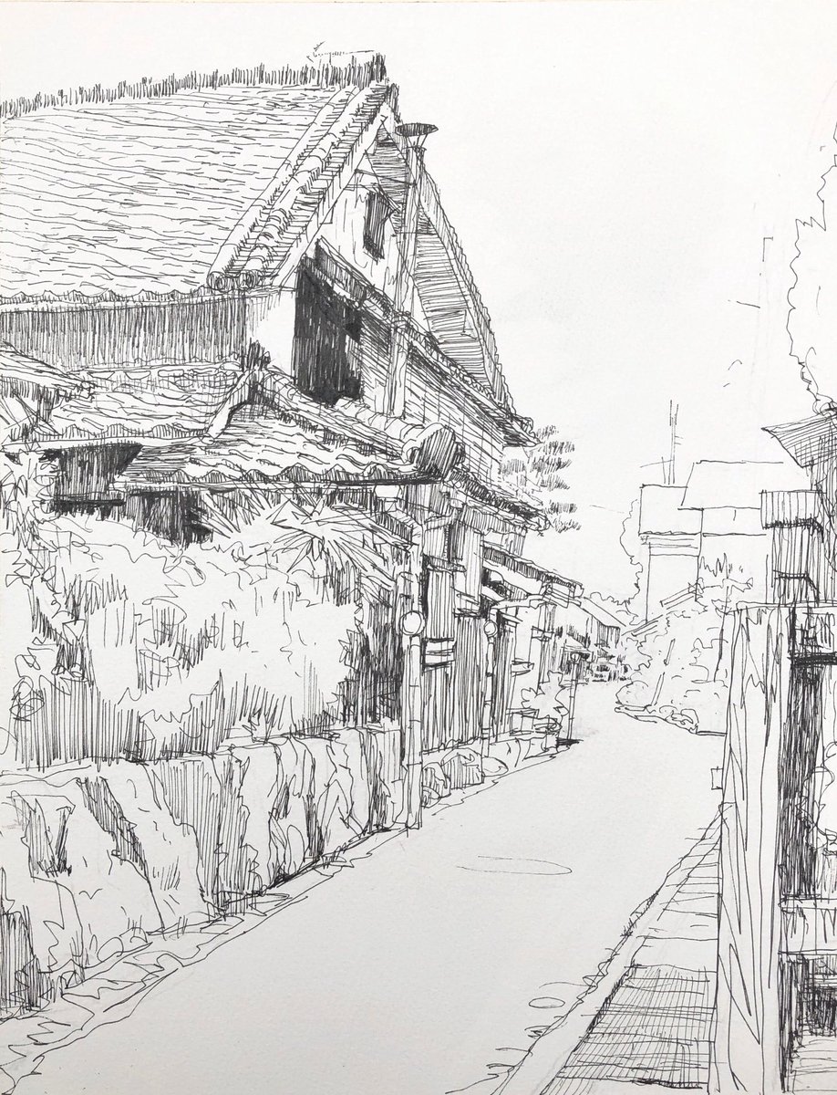 2019.10.26 大津市堅田で、築100年以上のどっしりとした町家をスケッチ。 ペン描き含めて現場制作。 波乃音酒造さんのすぐそばで、酒蔵に背中がつく感じで携帯イスに座って、結構あやしい人でした。 F6、ウォーターフォード ホワイト、ペン、透明水彩 三原色+ジョーンブリアン。3時間10分。 #水彩