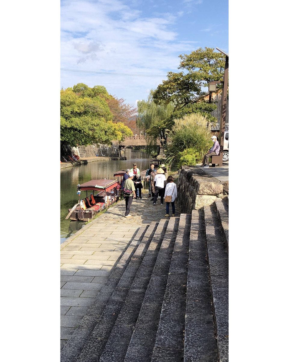 2022.10.22 近江八幡写生会。2枚目。八幡堀の船着場、新町浜から明治橋を望むスケッチ。 . 八幡堀まつりのランタンの準備などが始まって、人がいっぱい。 . テキトーに歪めて描いてみた。でもあんまり遊べてないなー。 . 440×190mm(F8ハーフ)、アヴァロン紙、透明水彩(三原色)。1時間30分。