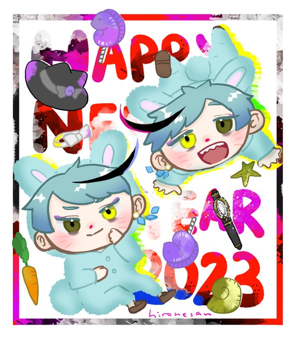 新年あけましておめでとうございます~🐰🐰昨年は沢山の方たちとご縁をいただきとっても楽しい推し活をすることができました🥹❤️どうぞ本年も宜しくお願い致します❤️ #twstファンアート #ツイステファンアート #あけましておめでとうございます
