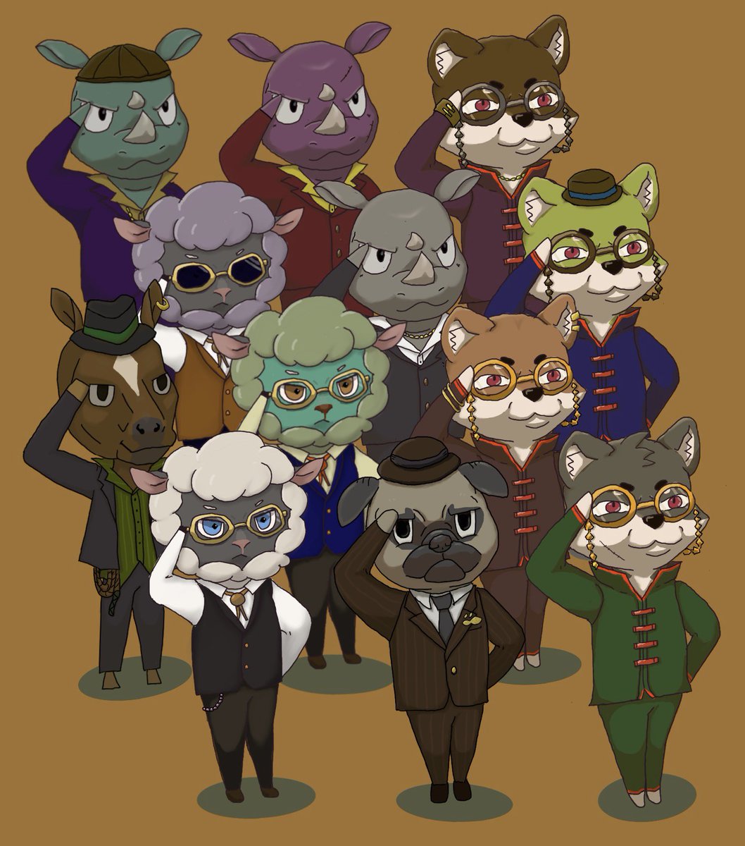 TMAファンアート企画‼️ 敬礼マフィア構成員大集合? 構成員達も個性溢れる方々ばかり TMAディスコードは楽しいよ‼️ #TMA #TMAart #tmafanart #TheMafiaAnimals 2Pカラーの構成員をオシャレさせつつ集めました。