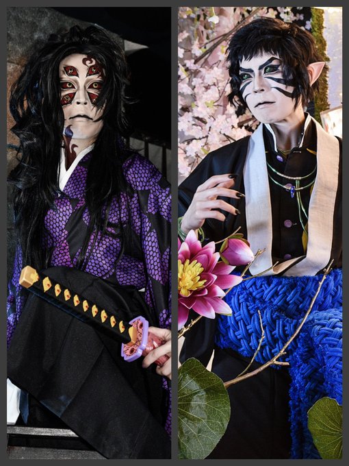 【コスプレ】 鬼の眼👹👀 壱と弐が見つめあっているのは意味はとくにありません…(^^) #コスプレイヤーさんと繋がりたい #レイヤーさんと繋がりたい #鬼滅の刃コスプレ