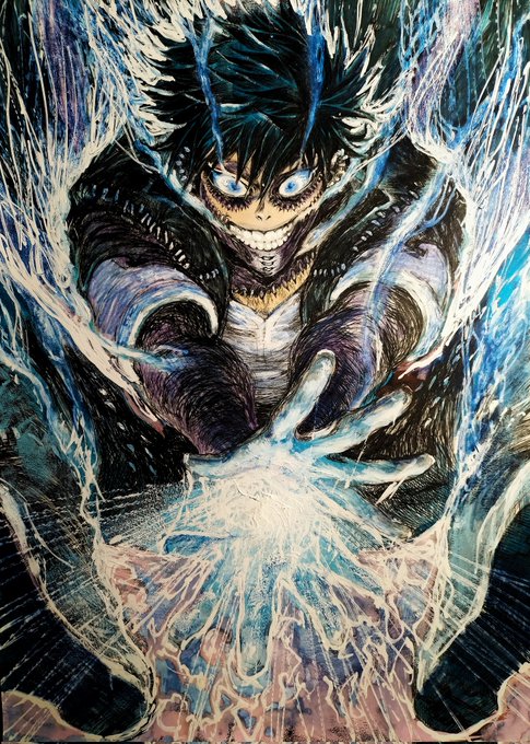 #自分の代表作だと思う絵を一枚だけ選んでみよう 「1枚だけ」を選ぶのは難しいので…。 自分が初めて、ガラスペンとインクを使って描いた乙骨憂太。 インクのお陰で、彩色に対する苦手意識を少し下げてくれた。