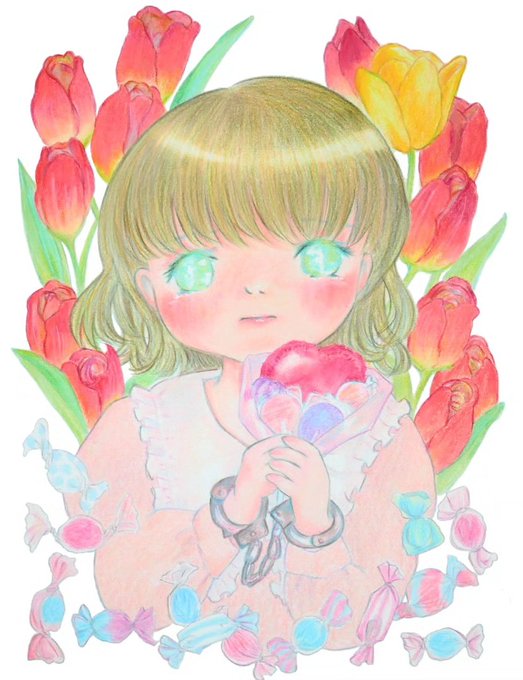 🌷🍬 #アナログ絵 #色鉛筆画