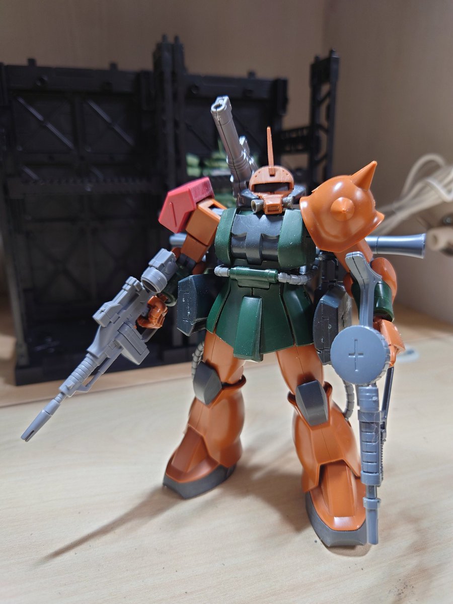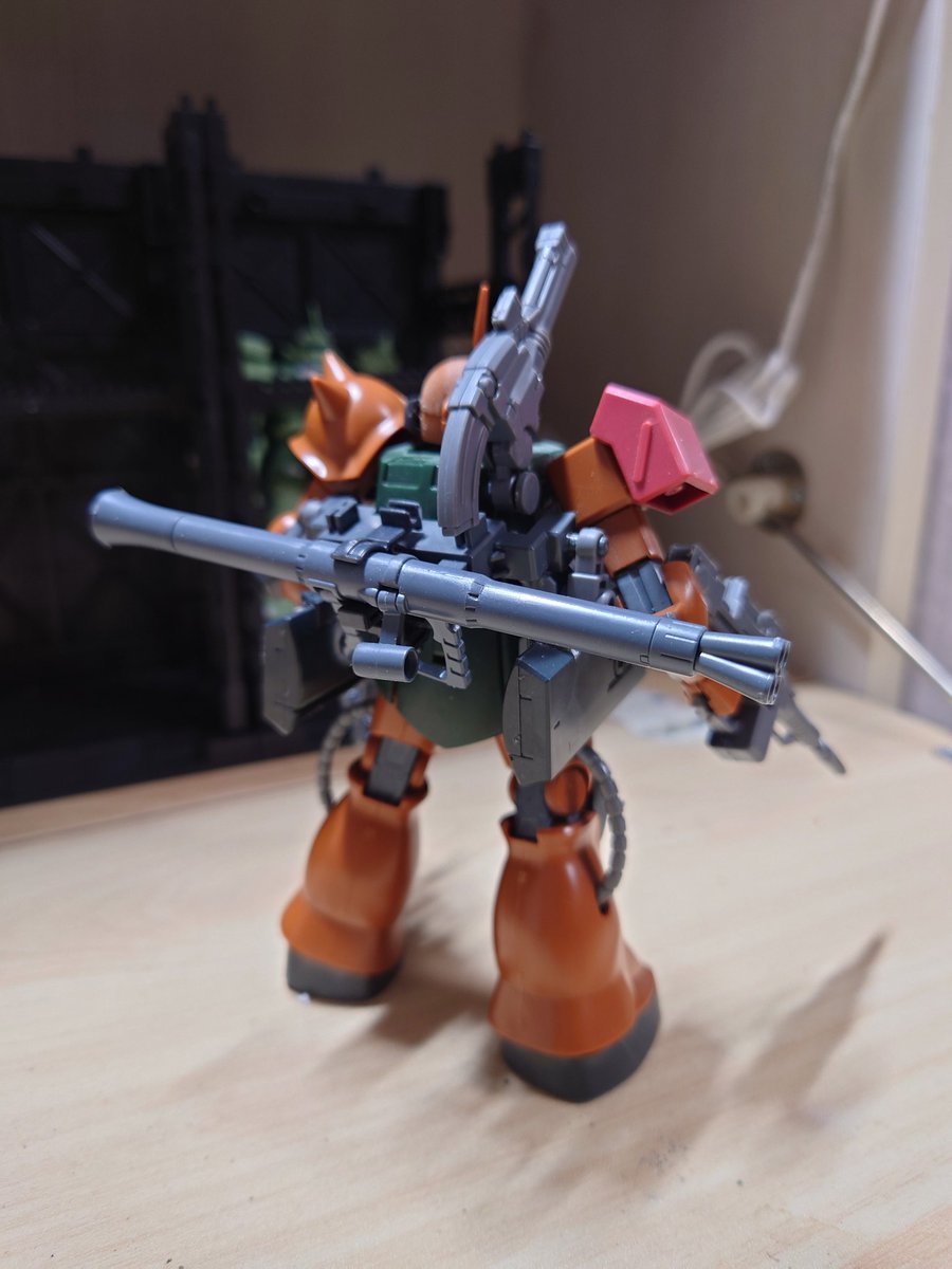 昨日の模活。 全く予定になかったことをやってしまいました。 「タンスの奥に仕舞ってる、あのパーツ使えるかも」って感じで、ちょっとだけのつもりがガッツリやってしまうパターンです💦 思いつきですが、余剰パーツに恵まれて、ザクキャノンっぽいものができました😆 #ガンプラ好きと繋がりたい