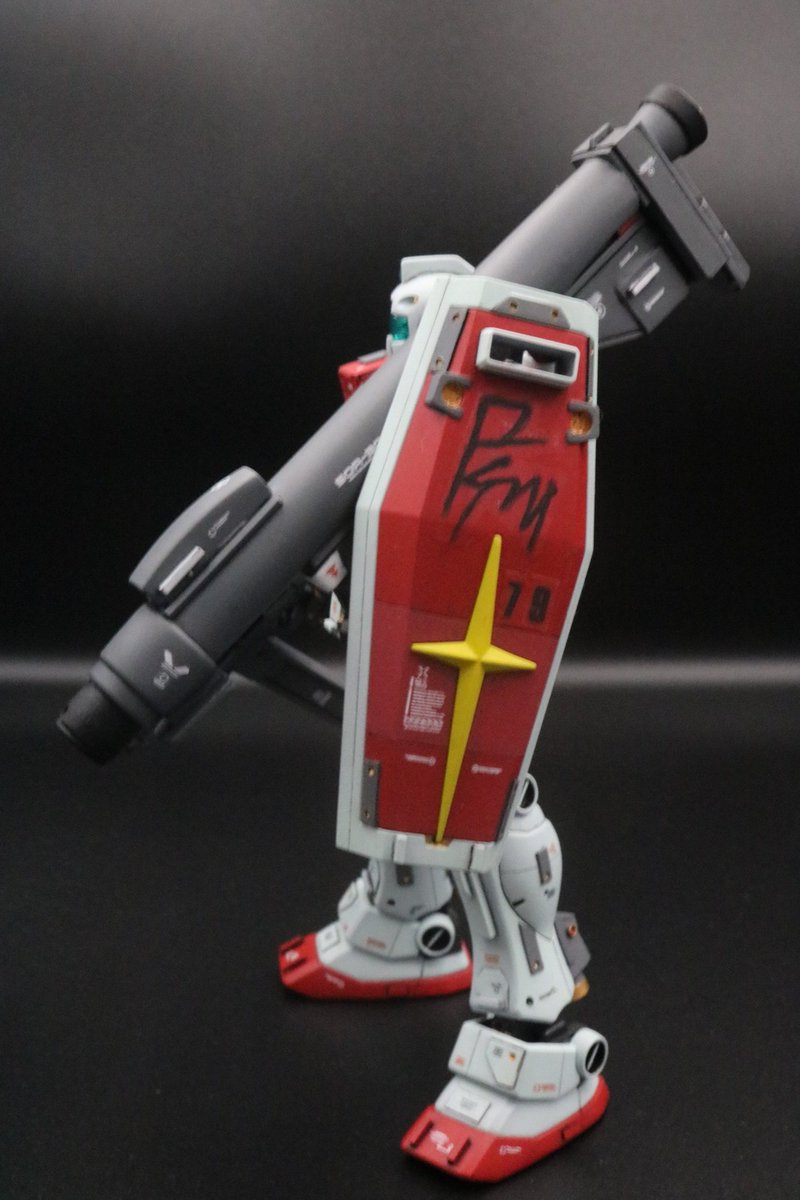 #自分は好きだけど伸びなかった作品 プラ板やスジボリに加え、バズーカとマシンガンを自作し、シールドの型式番号も割とオシャレ にしたのですが、思ったほど伸びませんでした😵💫 ちなみにあとにも先にも武器をオリジナルで作ったのはこれっきり😅