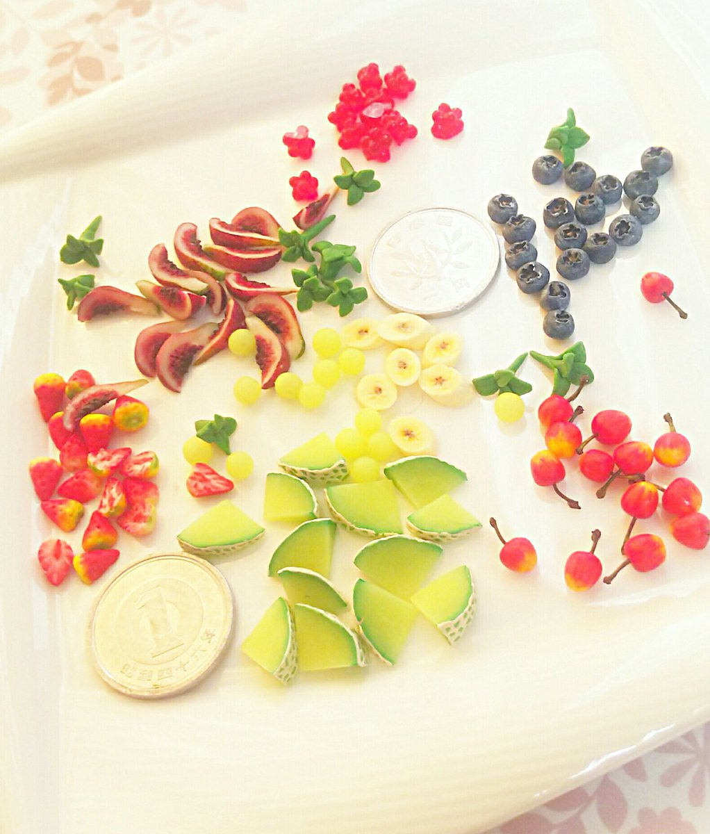 おはようございます🌞 ようやく、ちまちまと作っていたミニサイズのフルーツちゃん達が揃いましたヽ(*´∀`)ノ