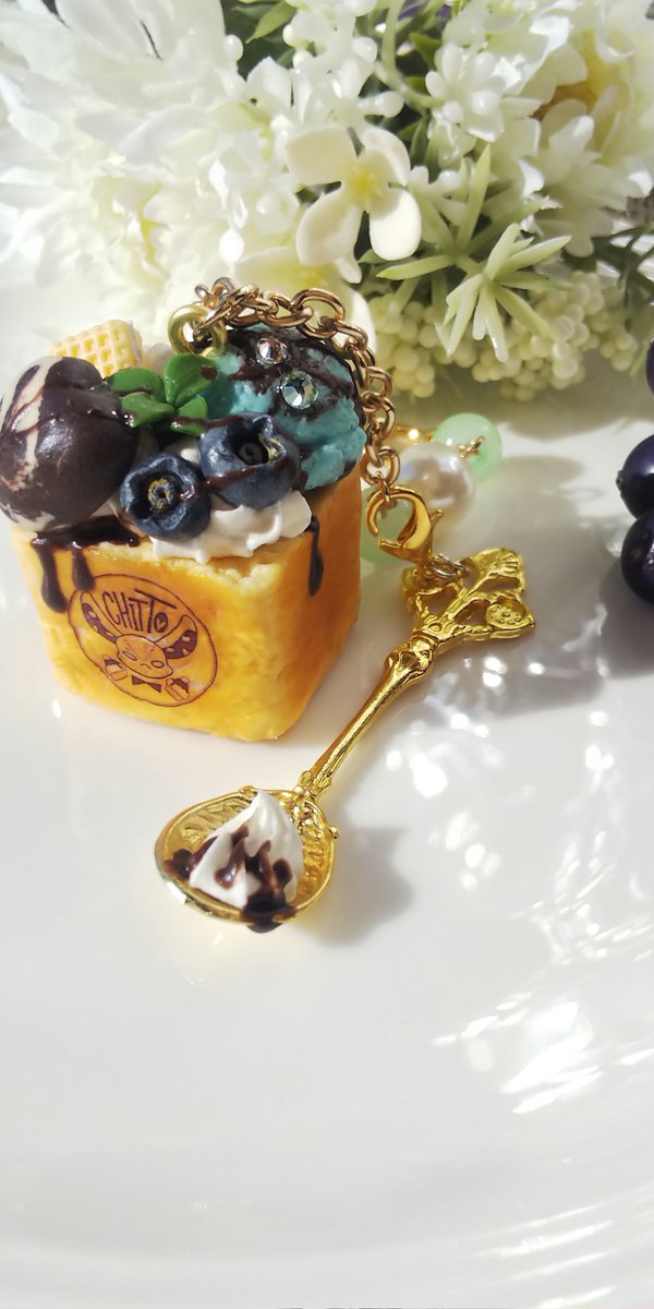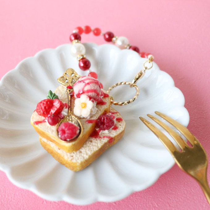 17 51 高円寺creamさん納品分の作品紹介です。久しぶりに大きいハニートーストも作りました♪こちらはバックチャームになります(*´ω`*) 19/01/23 08:19